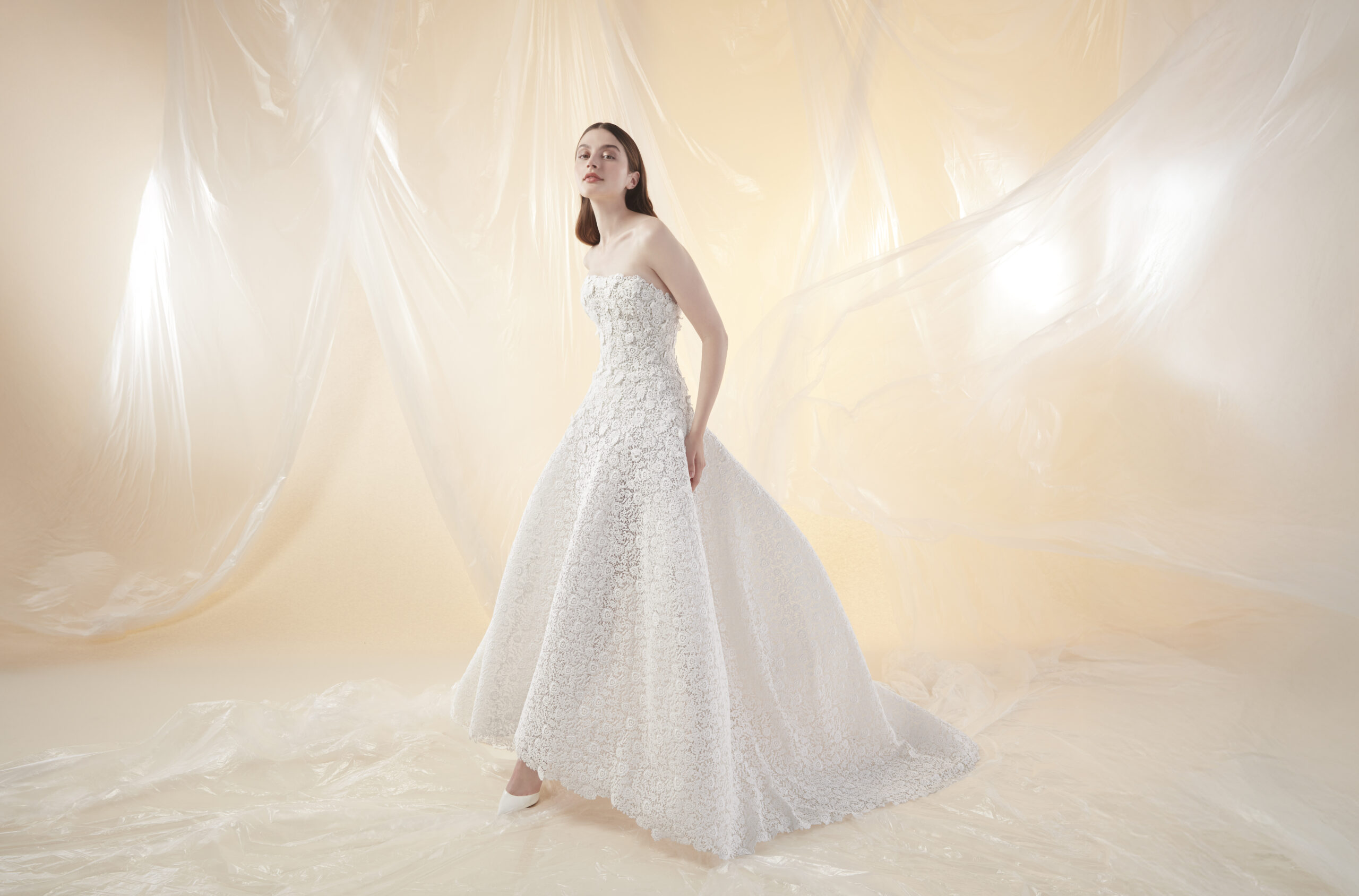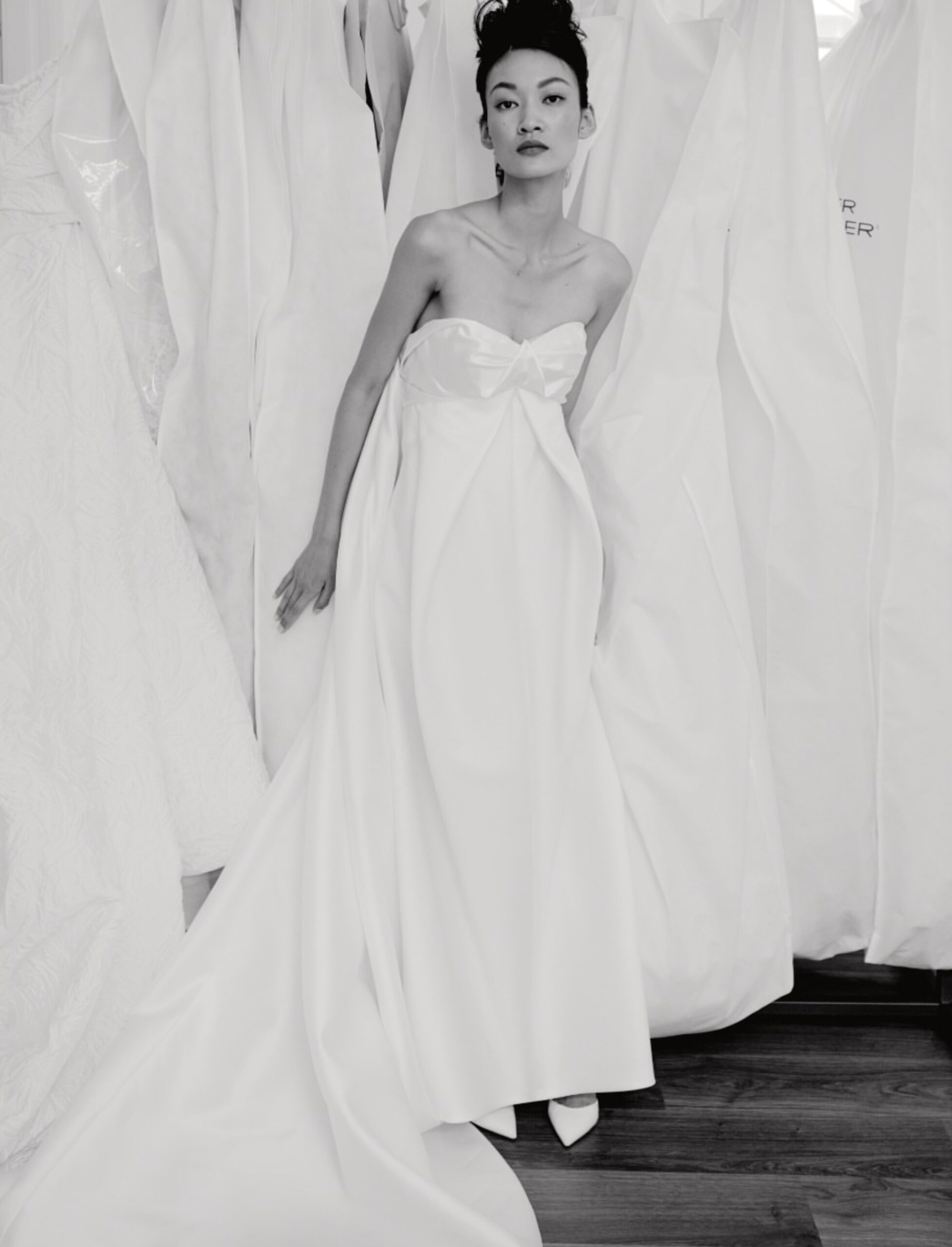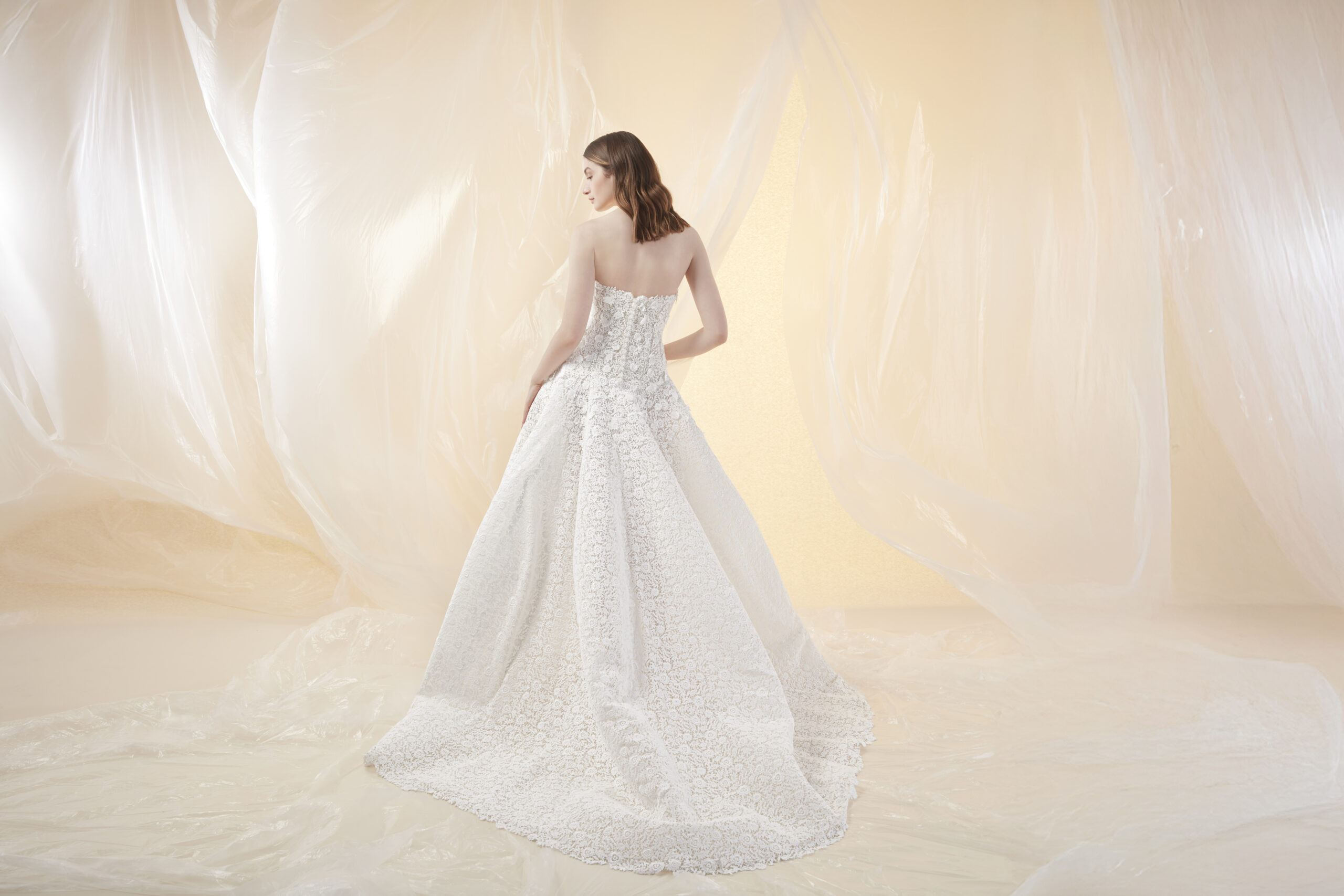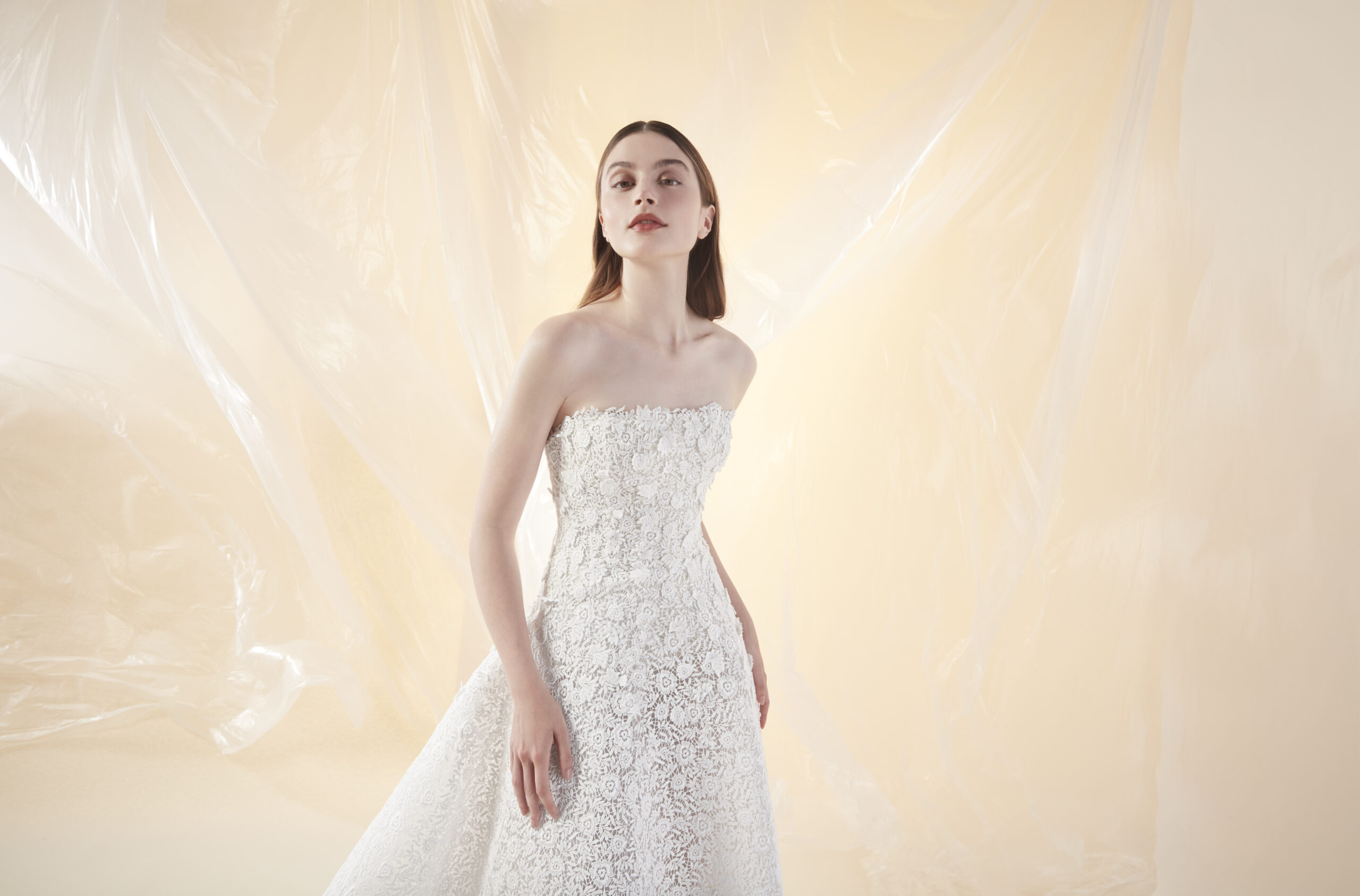 Peter Langner bridal gowns are synonymous with timeless elegance and meticulous craftsmanship. Each gown is a masterpiece, showcasing clean lines, architectural precision, and luxurious fabrics that create an effortlessly sophisticated look.